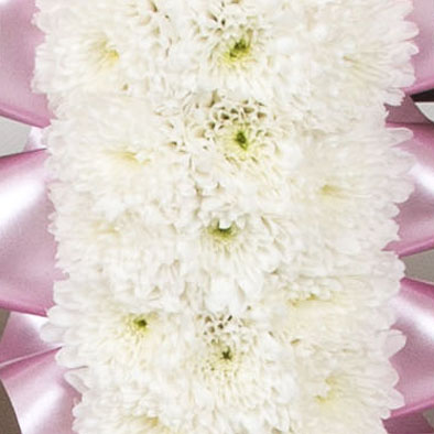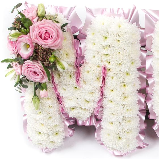 Our massed letter tributes are available with a white chrysanthemum base and sprays in a range of colours.